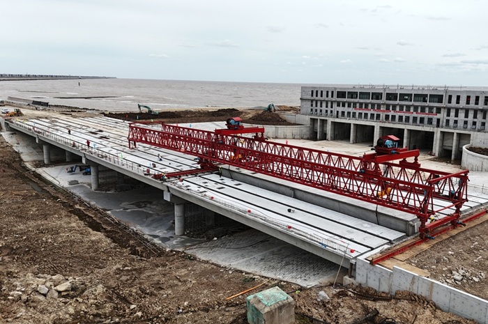 近日公司各在建項目搶抓施工黃金期掀起大干快上熱潮多個項目建設取得新進展 南復堆河泵閘工程配套交通橋順利合龍11月17日,經過10天的緊張施工,南復堆河泵閘工程配套交通橋順利完成44根橋梁吊裝...